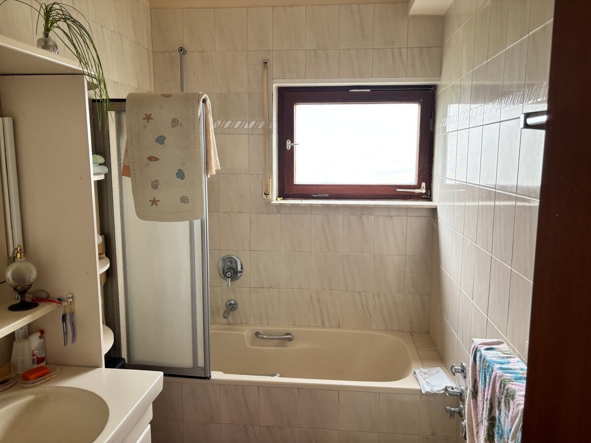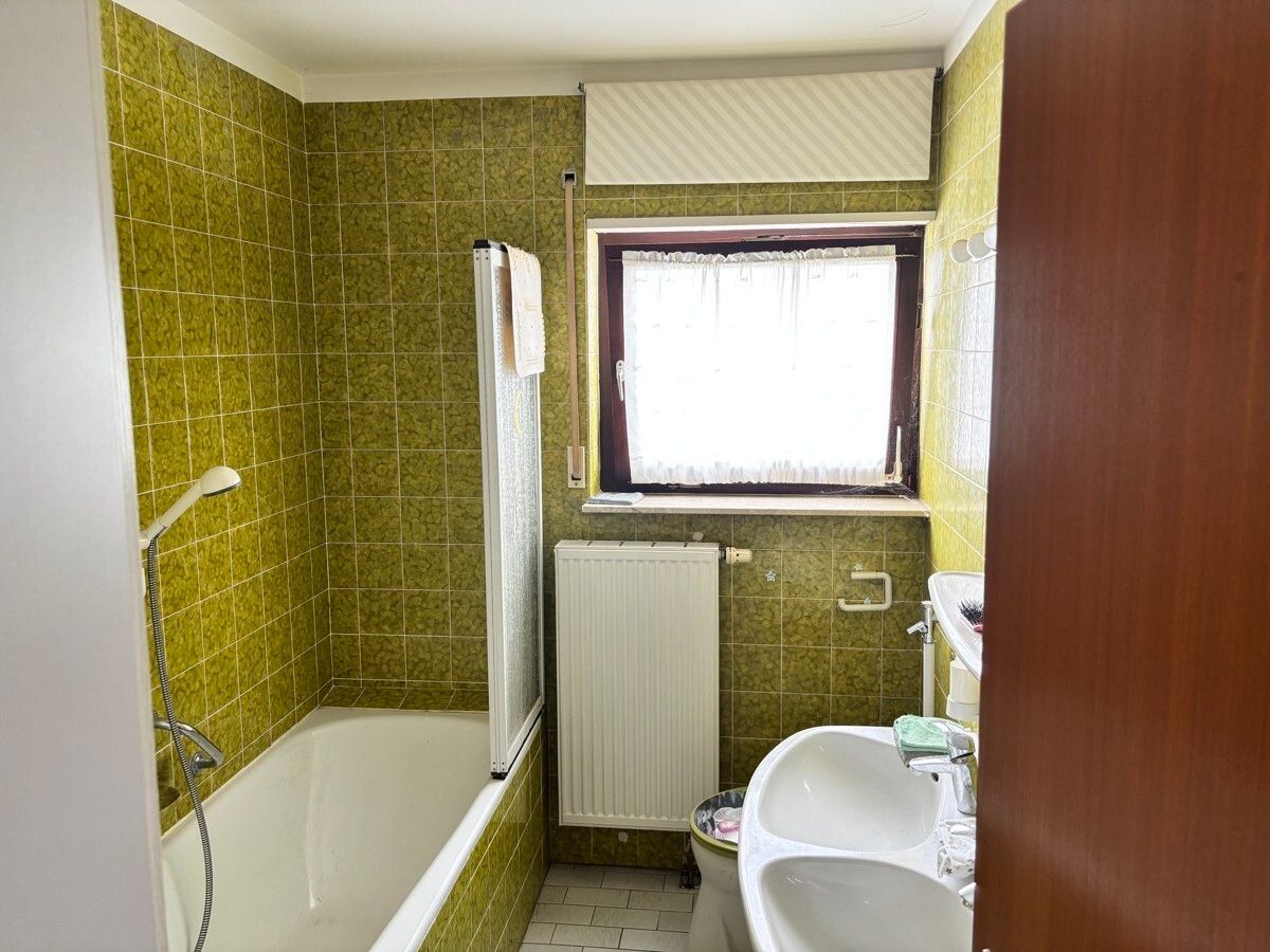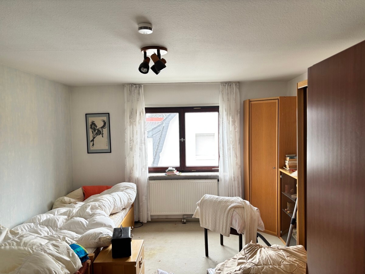 Rechterhand ist ein separates Gäste - WC, ein Bad mit Badewanne und einem Waschbecken. Auf dieser Ebene ist noch ein weiteres Zimmer vorhanden. Über die Treppe erreichen Sie das OG, welches 3 Zimmer und ein Bad mit Badewanne und WC ausweist. Auf dieser Etage ist auch ein großzügiger Balkon vorhanden. Voraussichtlich wurde der Dachausbau 2010 gemacht. Hierdurch sind nochmal 2 kleinere Zimmer mit Laminatböden und einem Stauraum entstanden. (ca. 10 m2 Wohnfläche )